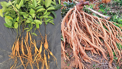 劣質(zhì)苗結薯特點 收獲期主根為木質(zhì)薯,其他分根薯細小,整棵重量少